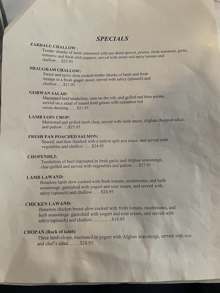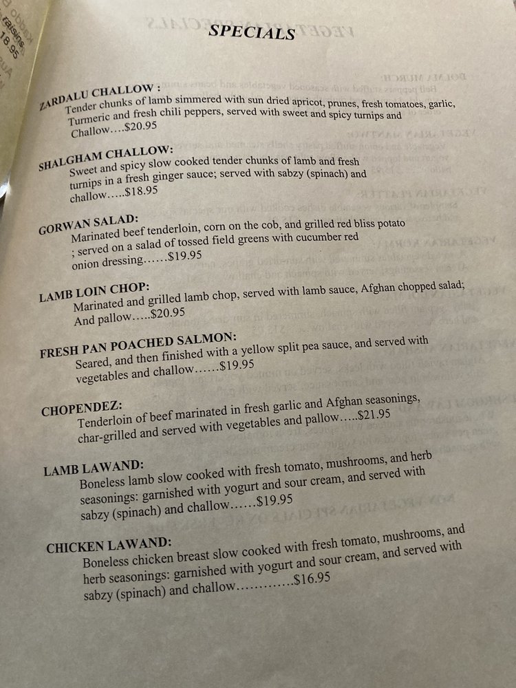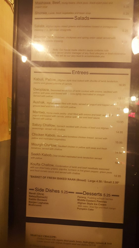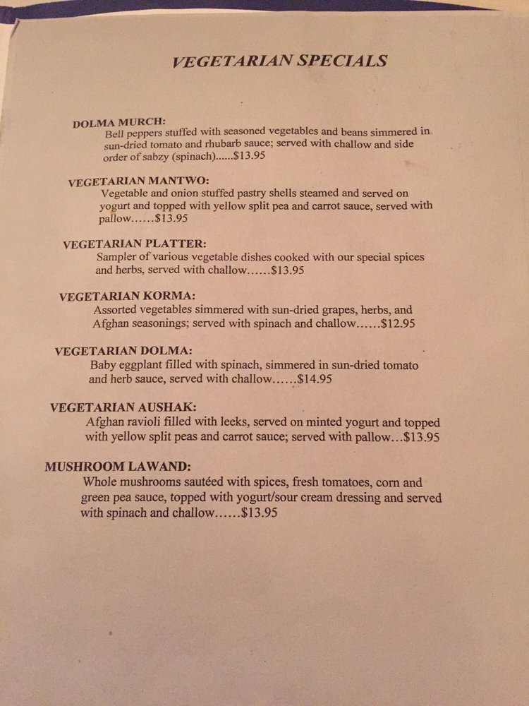 The Helmand Menu